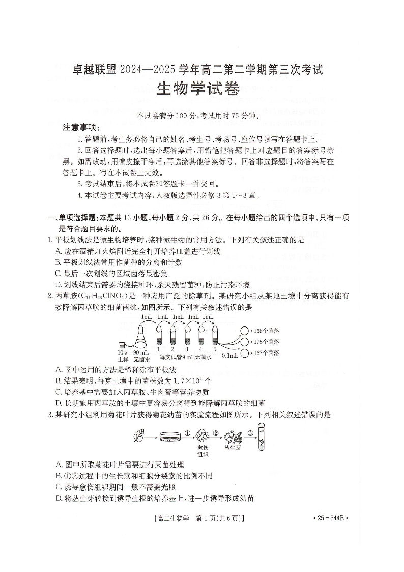 河北省邢台市卓越联盟2024-2025学年高二下学期第三次考试(6月)生物试卷(含答案).pdf