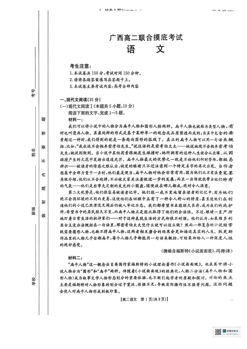 广西2024-2025学年高二6月联合摸底考试 语文试卷(含答案).pdf
