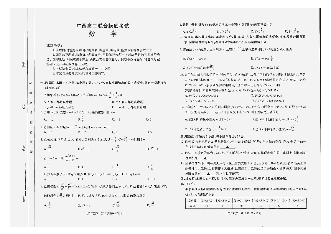 广西2024-2025学年高二6月联合摸底考试 数学试卷(含答案).pdf