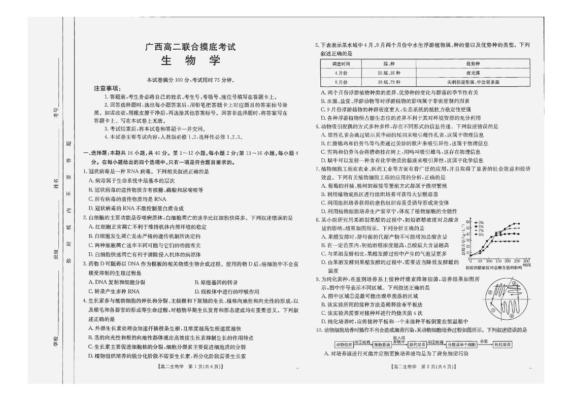 广西2024-2025学年高二6月联合摸底考试 生物试卷(含答案).pdf