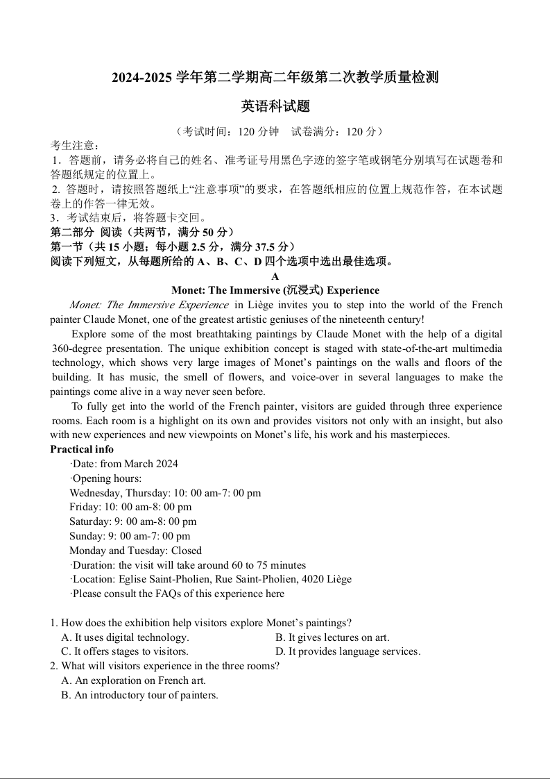 广东省肇庆市四校2024-2025学年高二年级第二次教学质量检测 英语(含答案).docx