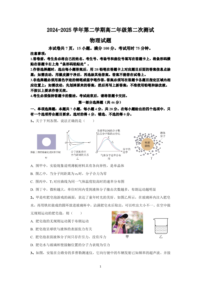 广东省肇庆市四校2024-2025学年高二年级第二次教学质量检测 物理(含答案).pdf