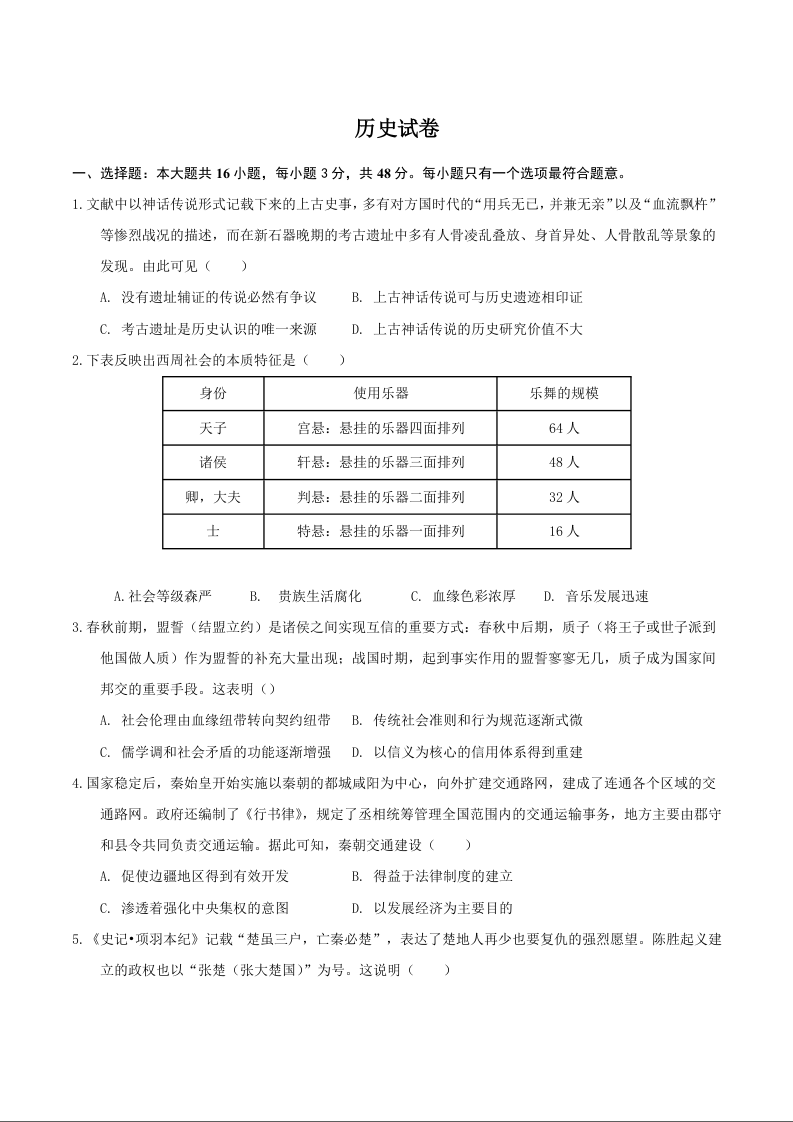 广东省肇庆市四校2024-2025学年高二年级第二次教学质量检测 历史(含答案).docx