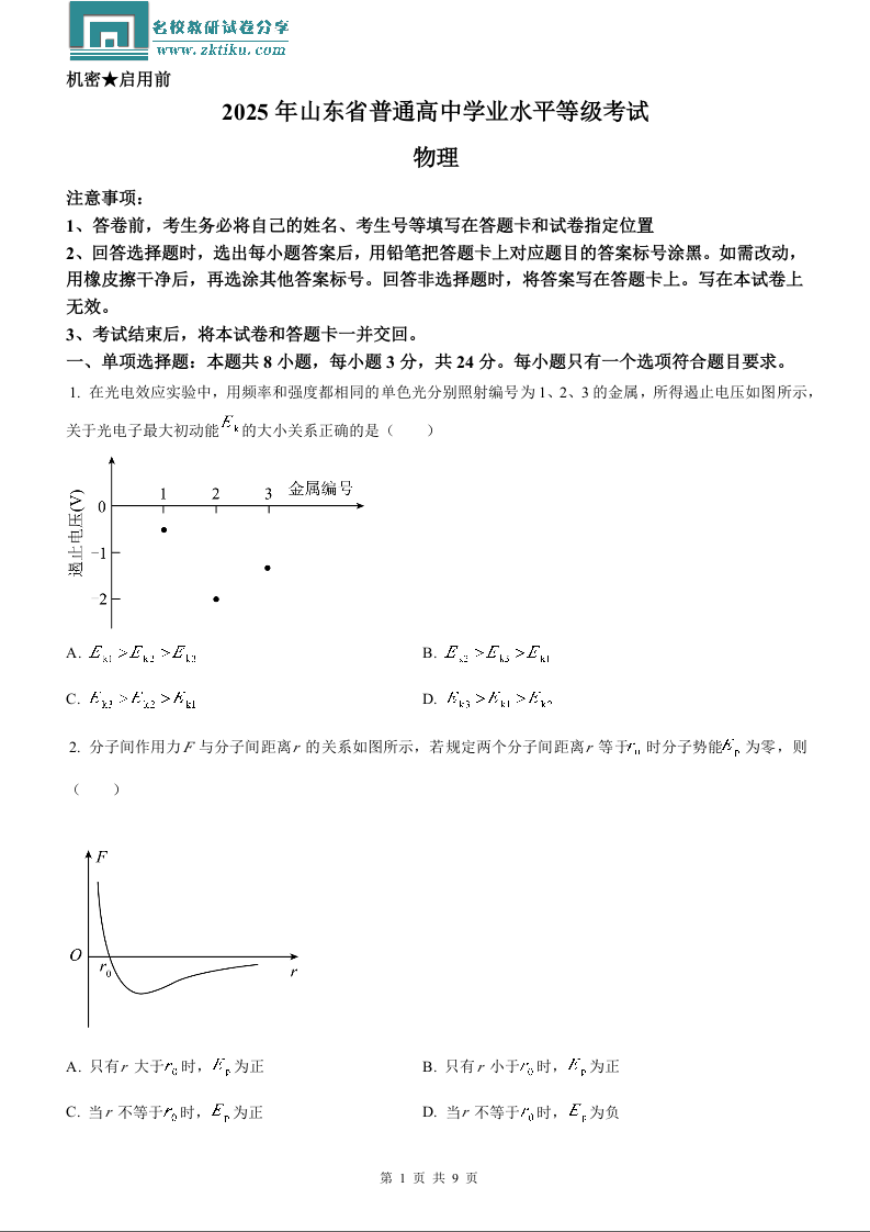 2025年高考山东卷物理真题.docx