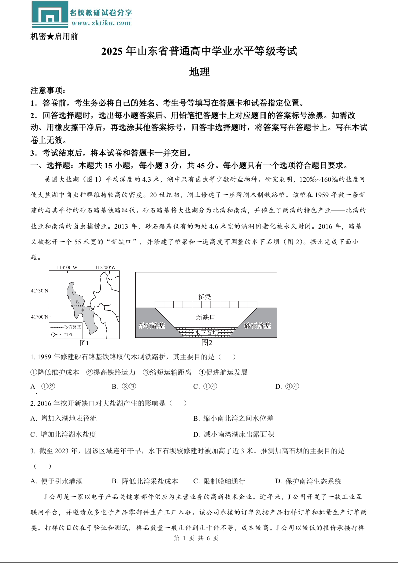 2025年山东高考地理真题.docx