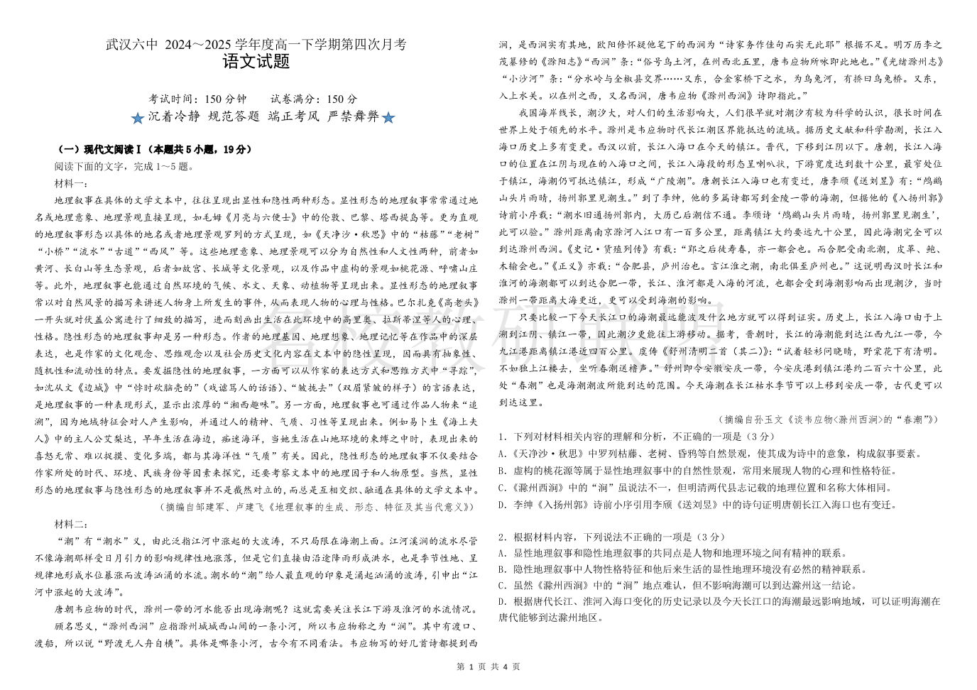 武汉六中2024-2025学年度高一下学期第四次月考 语文.pdf