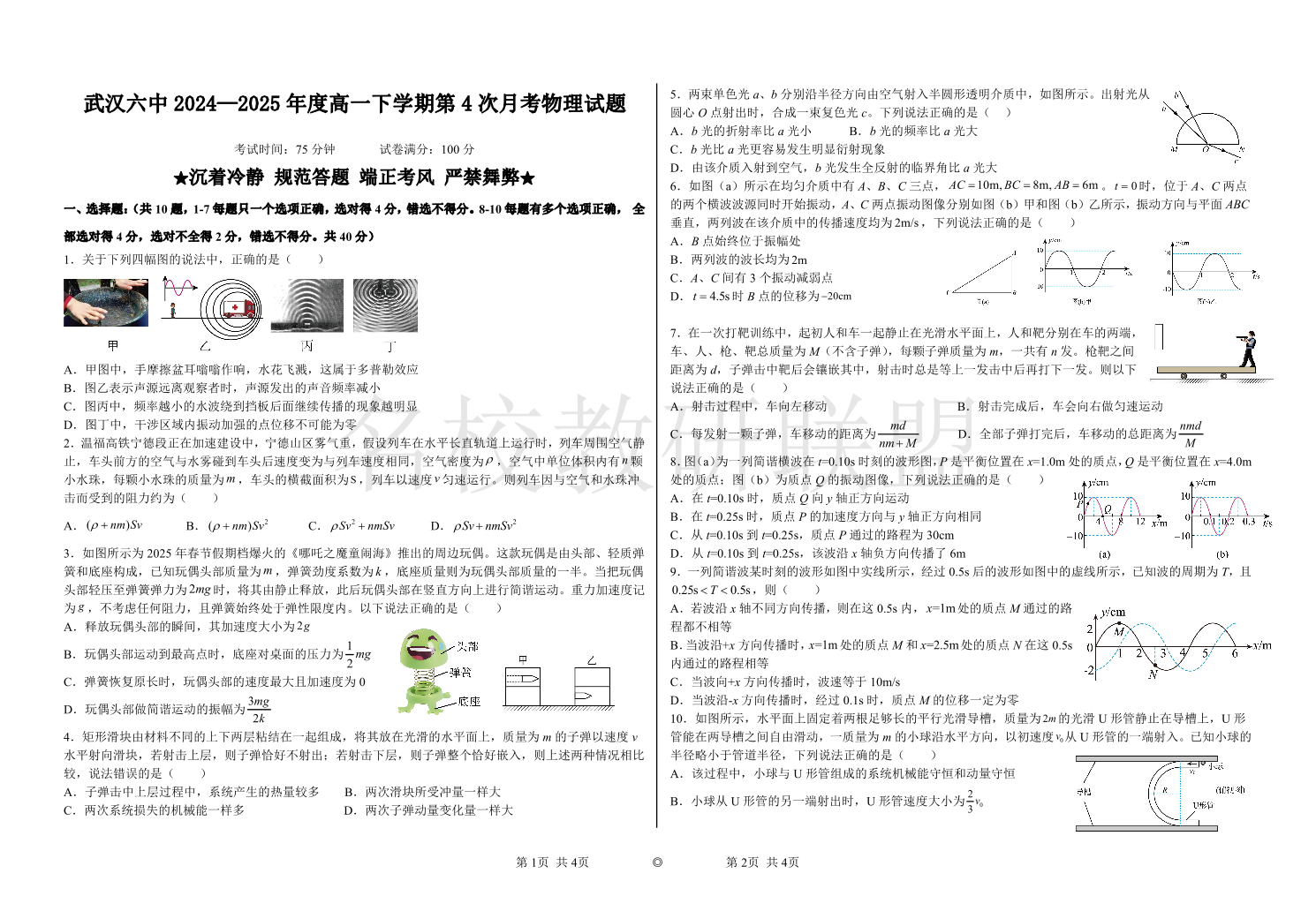 武汉六中2024-2025学年度高一下学期第四次月考 物理.pdf