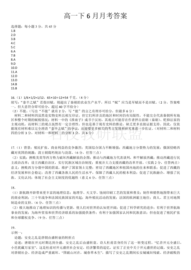 武汉六中2024-2025学年度高一下学期第四次月考 历史答案.pdf