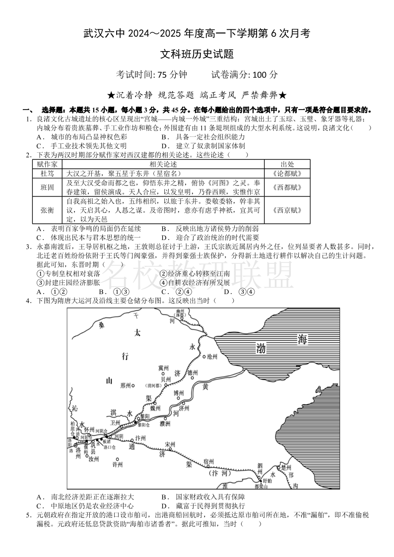武汉六中2024-2025学年度高一下学期第四次月考 历史.pdf