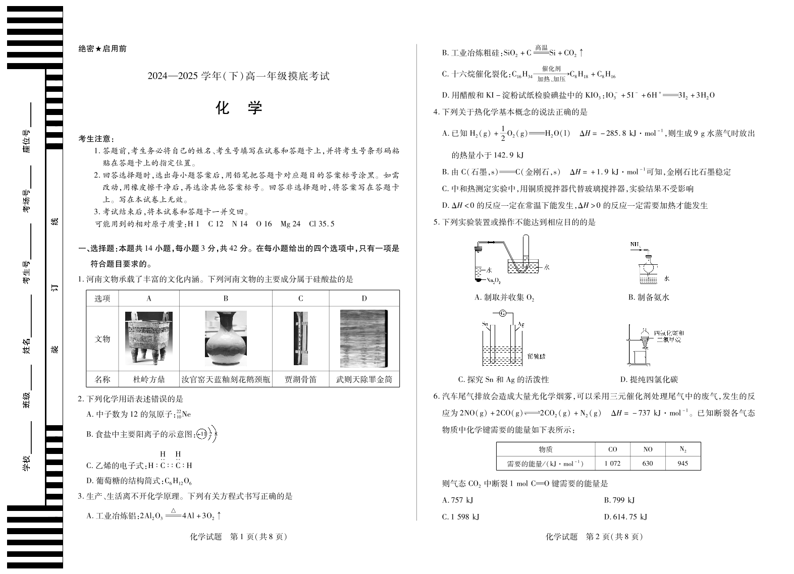河南省天一大联考2024-2025学年(下)高一年级摸底考试 化学.pdf