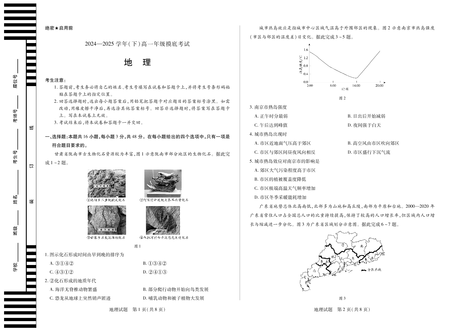 河南省天一大联考2024-2025学年(下)高一年级摸底考试 地理.pdf