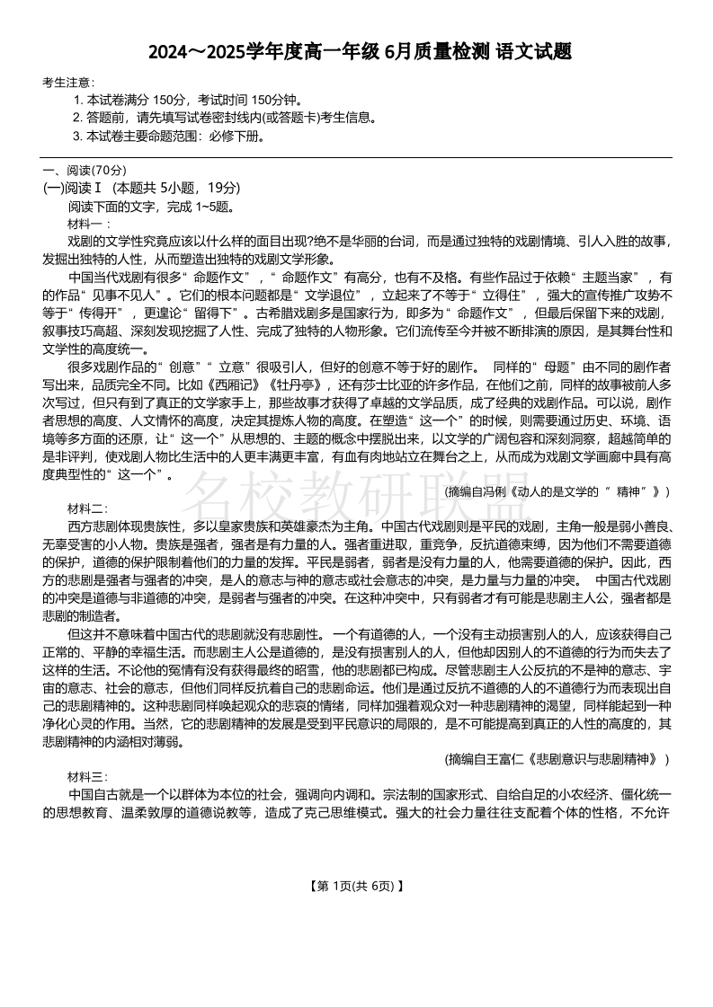 河北省邢台市七县多校2024-2025学年高一下学期6月质量检测 语文试卷(含答案).pdf