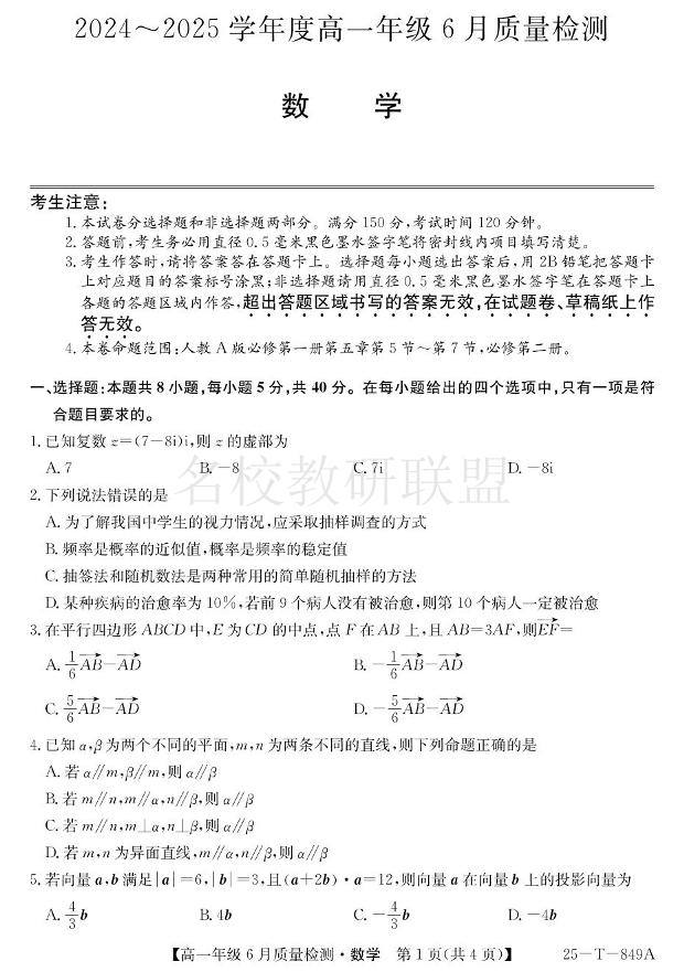 河北省邢台市七县多校2024-2025学年高一下学期6月质量检测 数学试卷(含答案).pdf