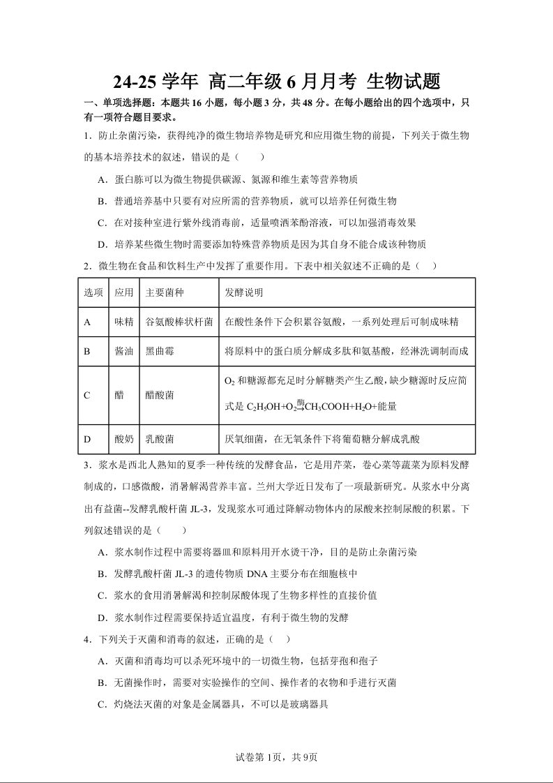 石嘴山市第一中学2024-2025学年第二学期高二6月月考 生物.docx
