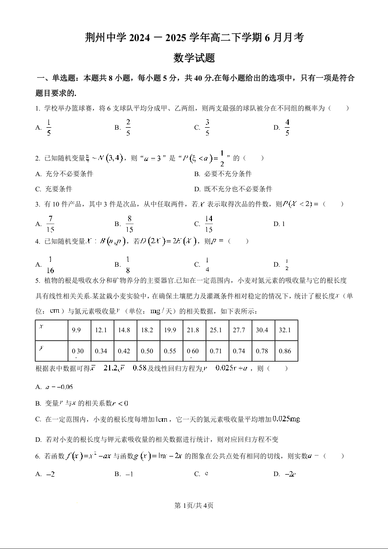荆州中学2024-2025学年高二下学期6月月考 数学.docx