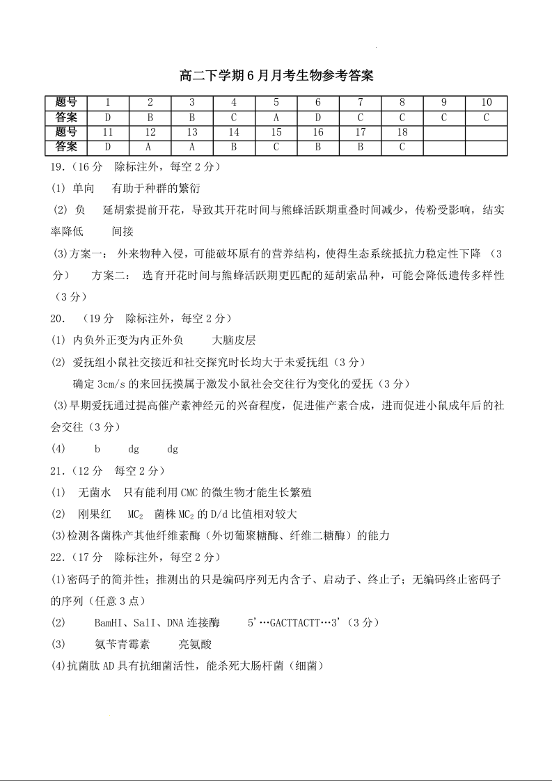 荆州中学2024-2025学年高二下学期6月月考 生物答案.docx