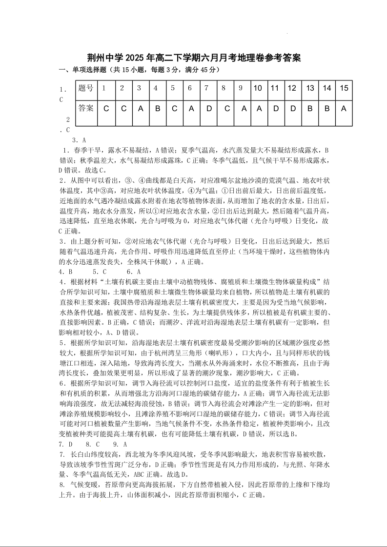 荆州中学2024-2025学年高二下学期6月月考 地理答案.docx