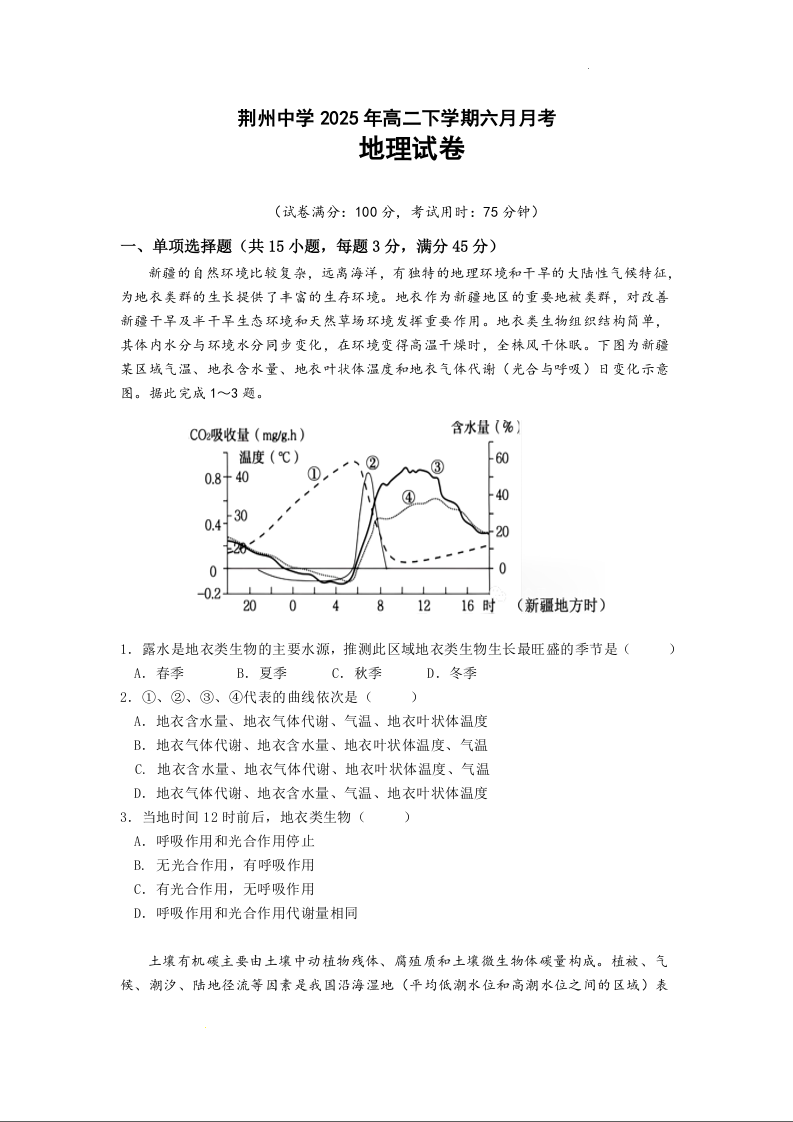 荆州中学2024-2025学年高二下学期6月月考 地理.docx