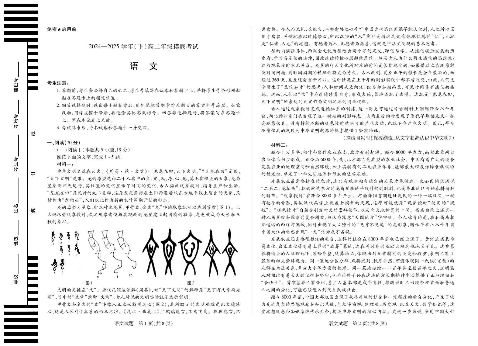 河南省天一大联考2024-2025学年(下)高二年级摸底考试 语文.pdf