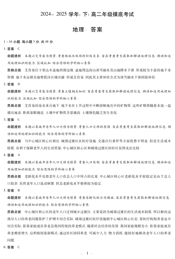 河南省天一大联考2024-2025学年(下)高二年级摸底考试 地理答案.pdf