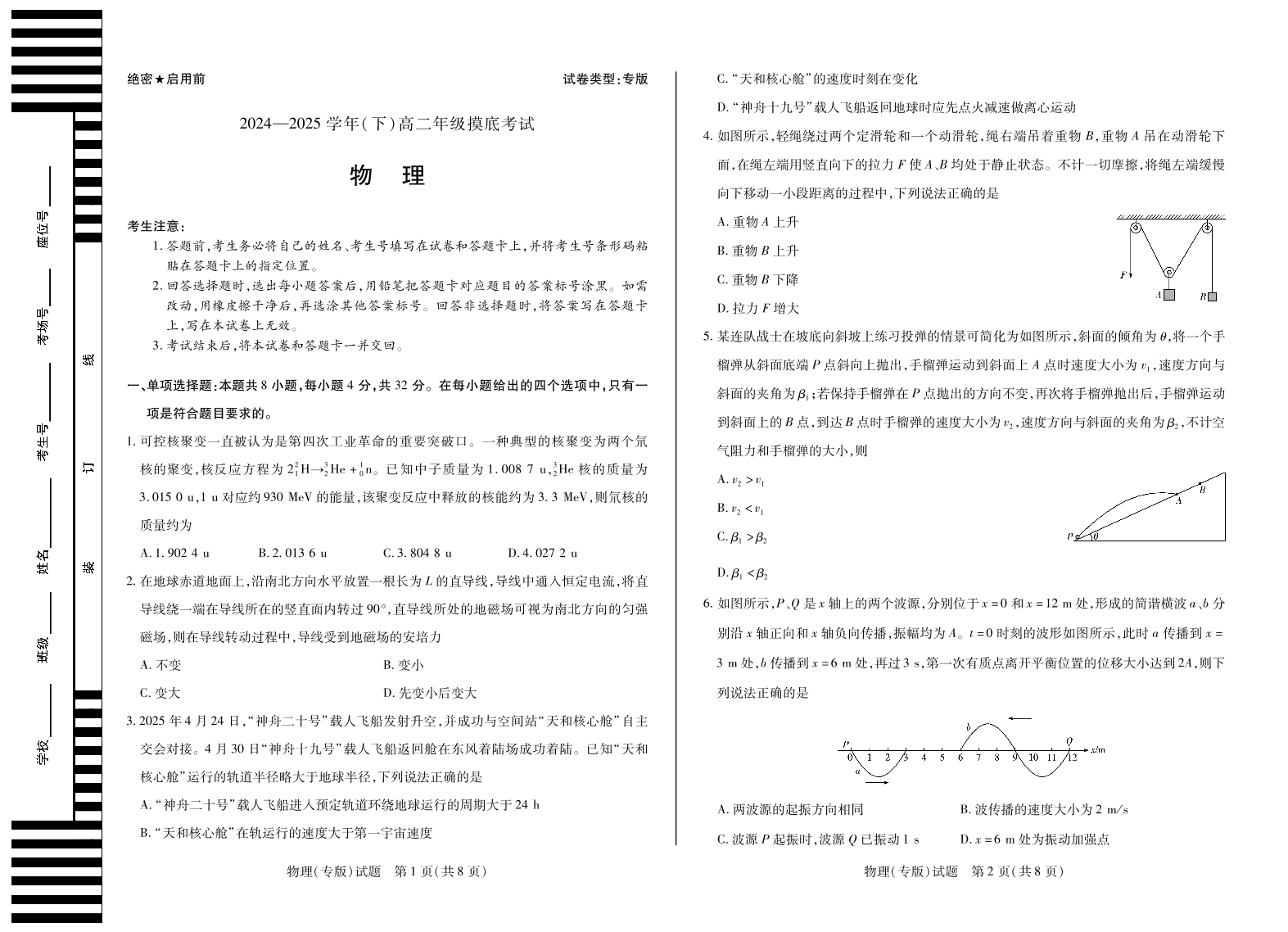 安徽省天一大联考2024-2025学年(下)高二年级摸底考试 物理.pdf