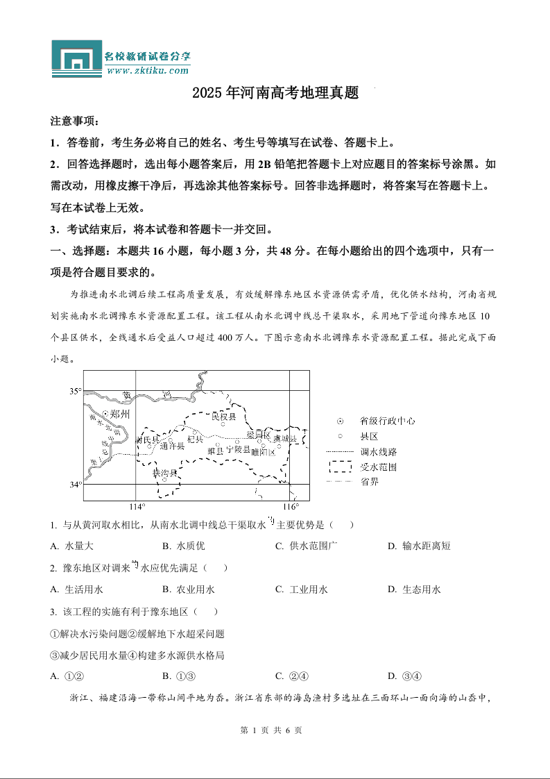2025年河南高考地理真题.docx