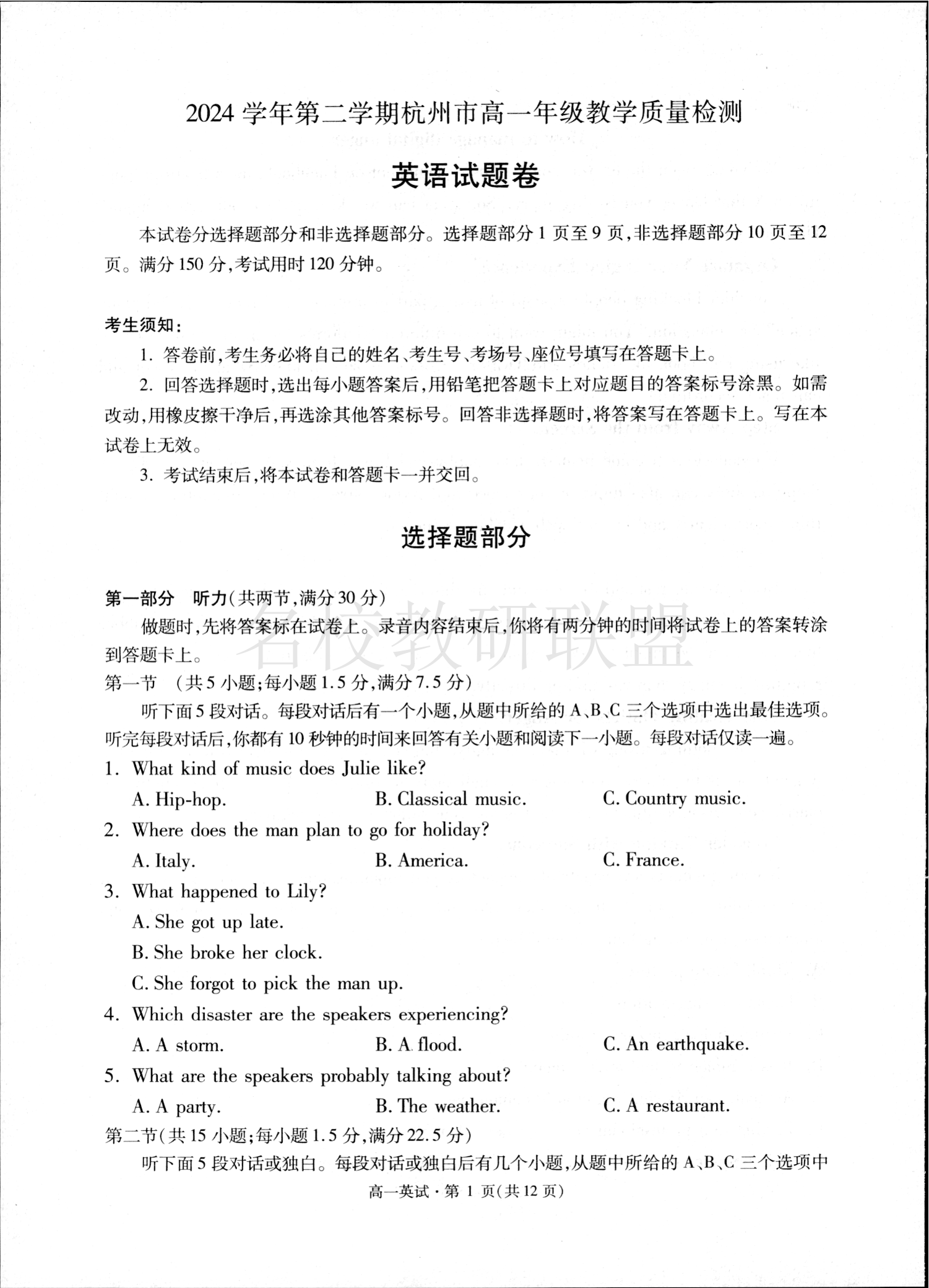 2024学年第二学期杭州市高一年级教学质量检测 英语.pdf