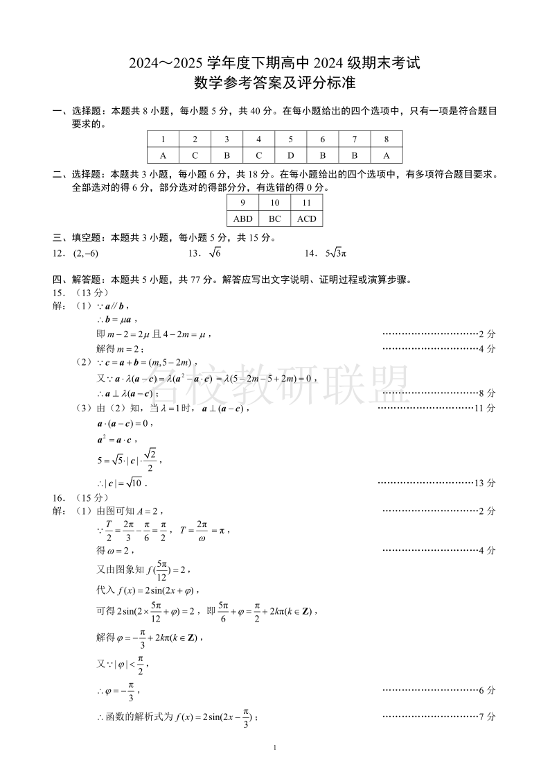 2024~2025学年度下期高中2024级期末考试 数学答案.pdf