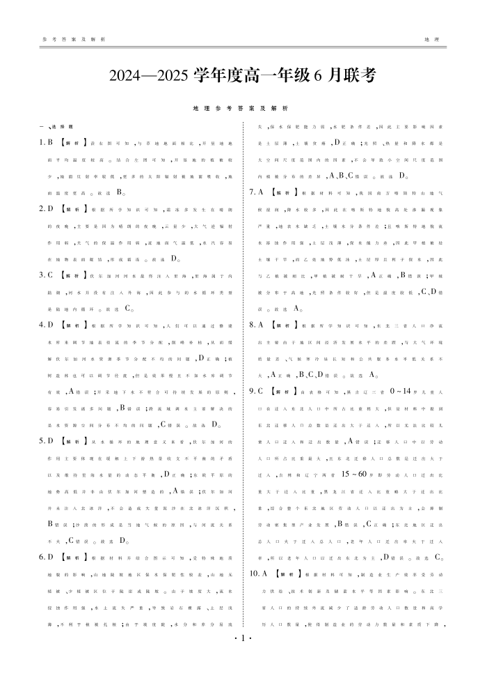 高一地理答案(2024一2025学年度高一年级6月联考).pdf