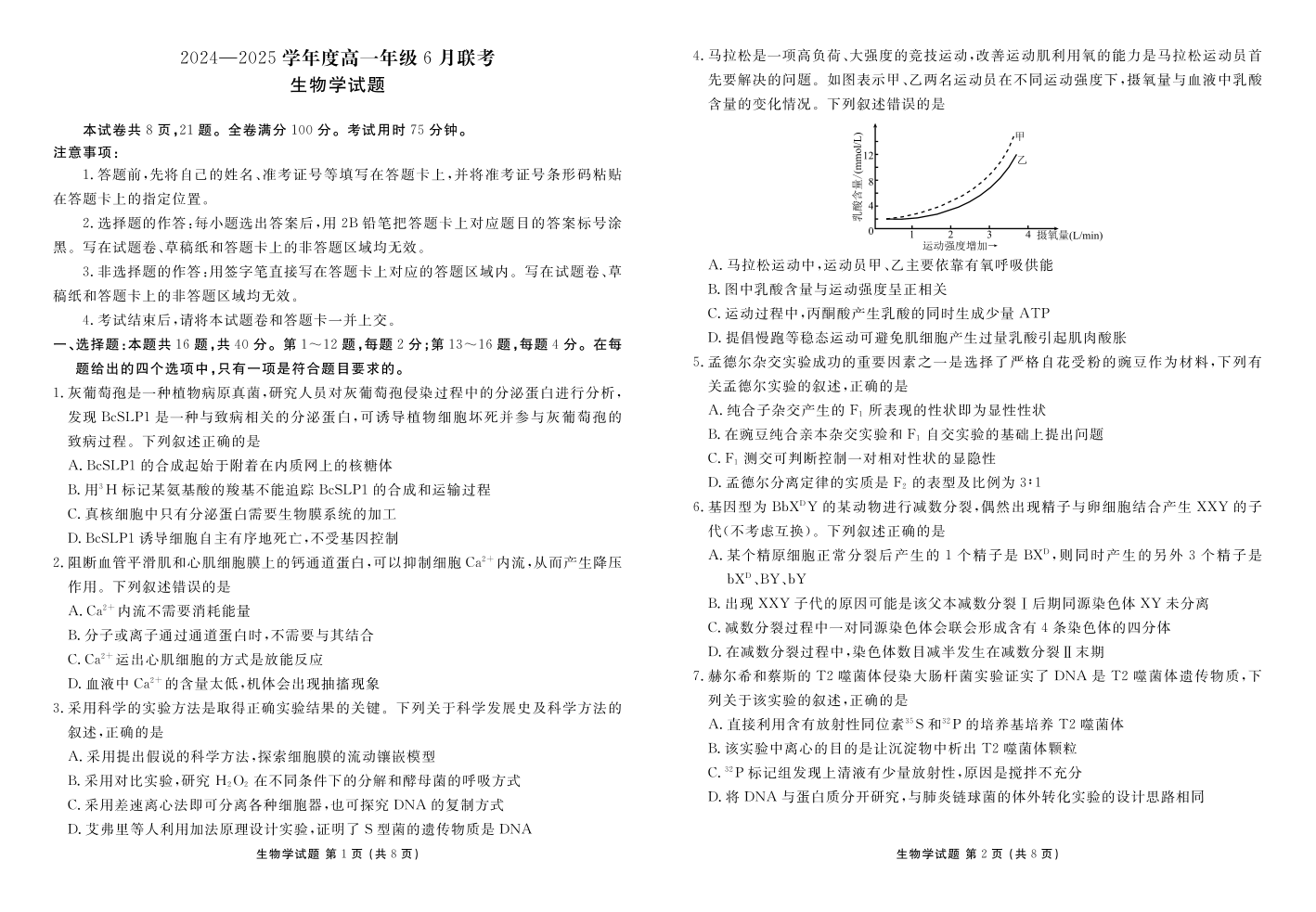 高一生物正文(2024一2025学年度高一年级6月联考).pdf