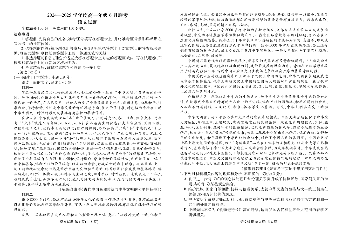 高一语文正文(2024一2025学年度高一年级6月联考).pdf
