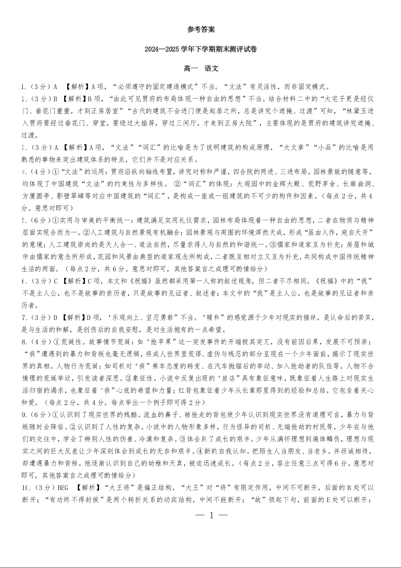 25高一下期末 语文答案.doc