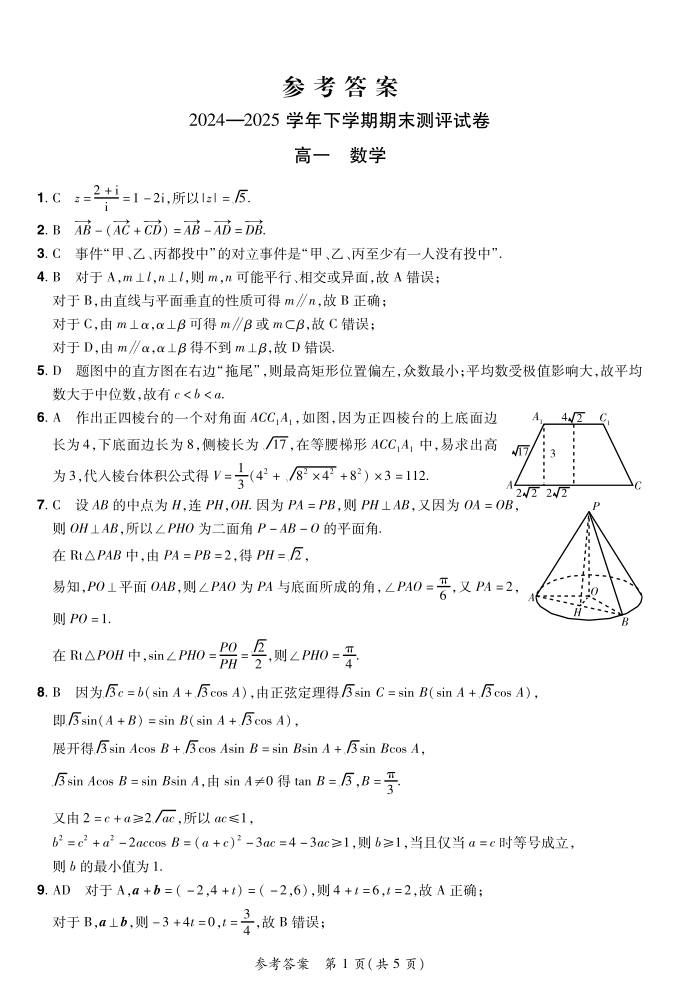 25高一下期末 数学答案.pdf