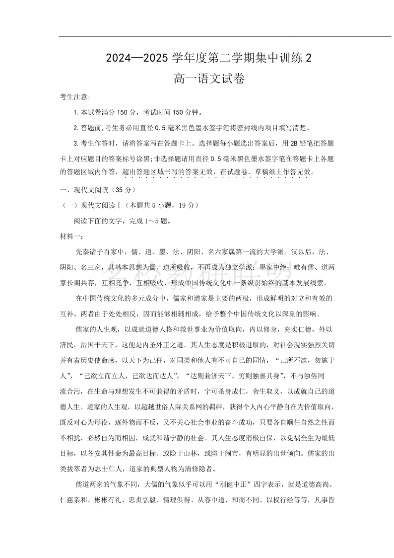 安徽省庐巢联盟2024-2025学年高一下学期第二次集中练习 语文(含答案).pdf
