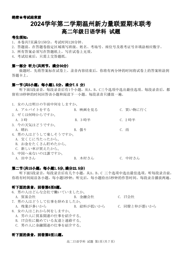 日语试题|2506新力量联盟期末联考.pdf