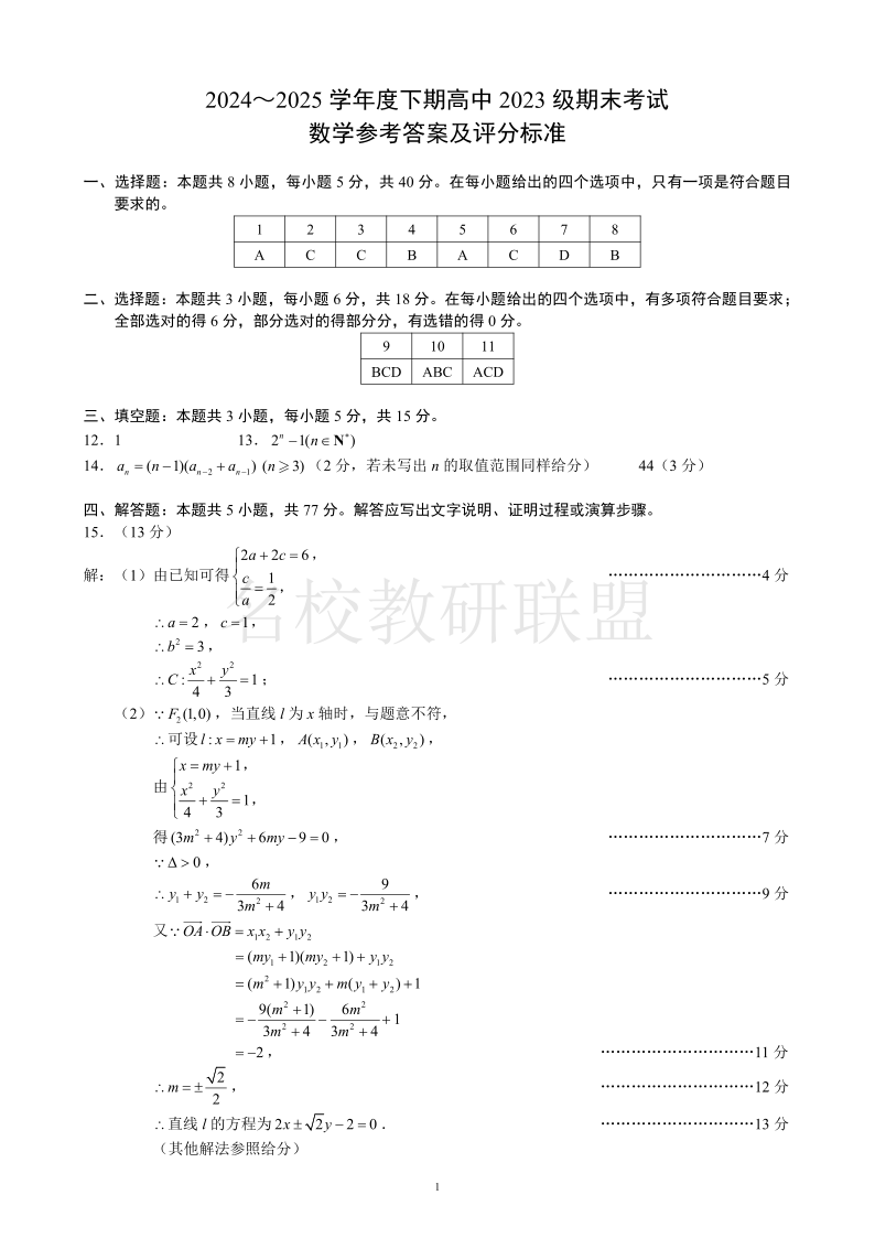 2024~2025学年度下期高中2023级期末考试 数学答案.pdf