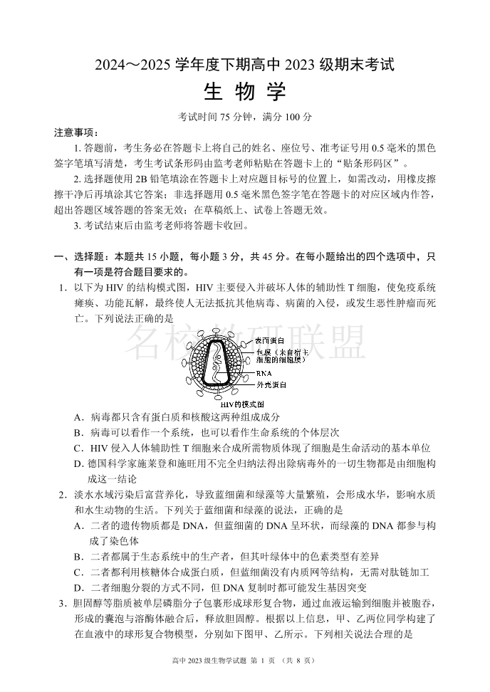 2024~2025学年度下期高中2023级期末考试 生物.pdf