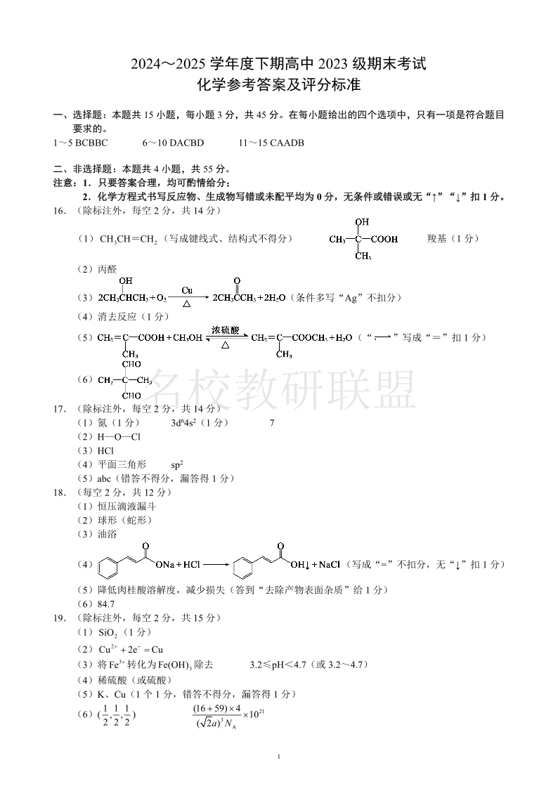 2024~2025学年度下期高中2023级期末考试 化学答案.pdf