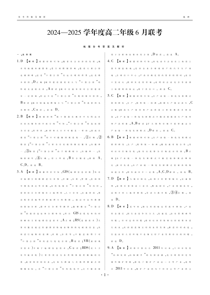 高二地理答案(2024一2025学年度高二年级6月联考).pdf