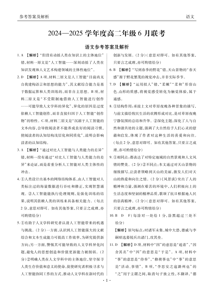 高二语文答案(2024一2025学年度高二年级6月联考).pdf