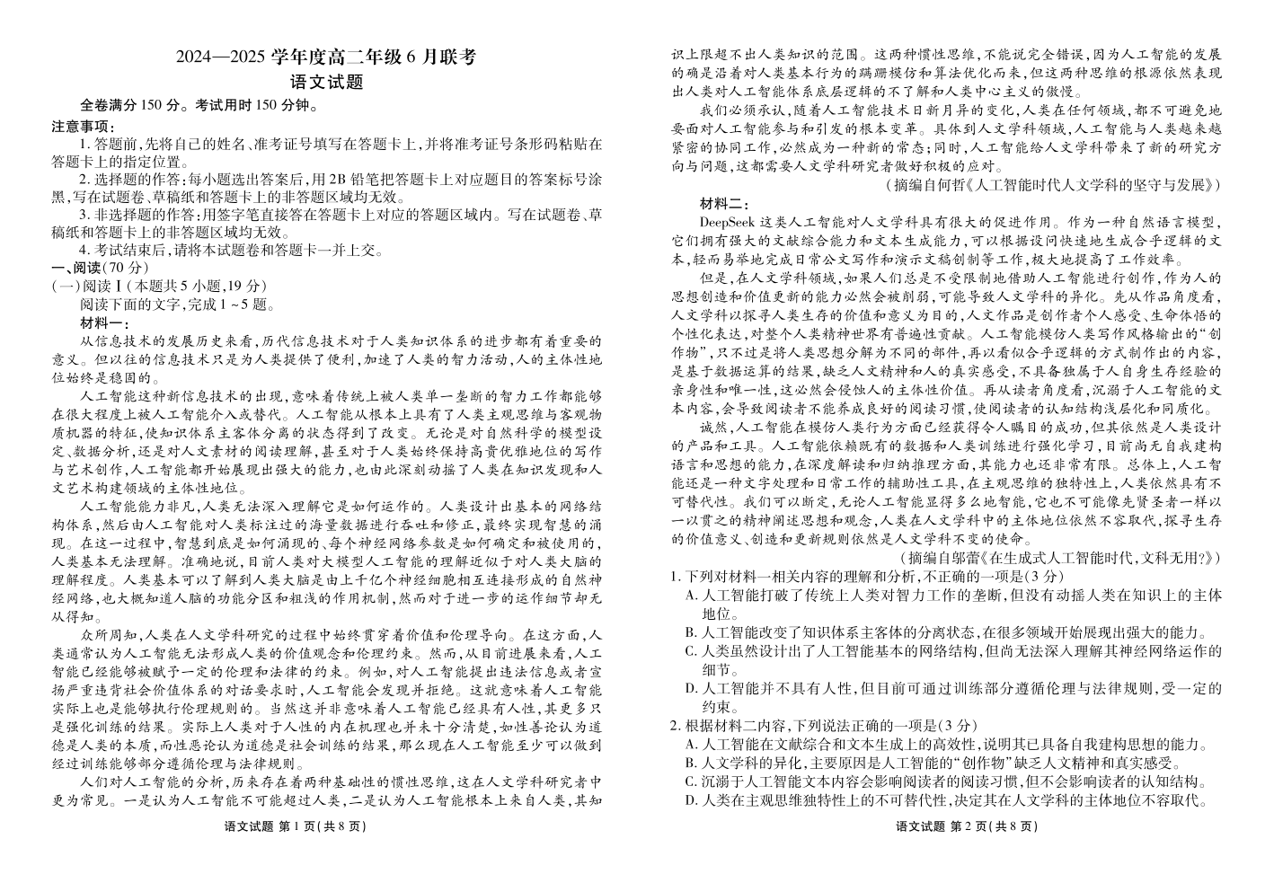 高二语文正文(2024一2025学年度高二年级6月联考).pdf
