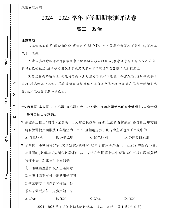 25高二下期末 政治.pdf