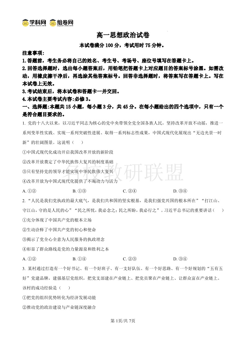河南省创新发展联盟2024-2025学年高一下学期6月期末考试 政治.pdf