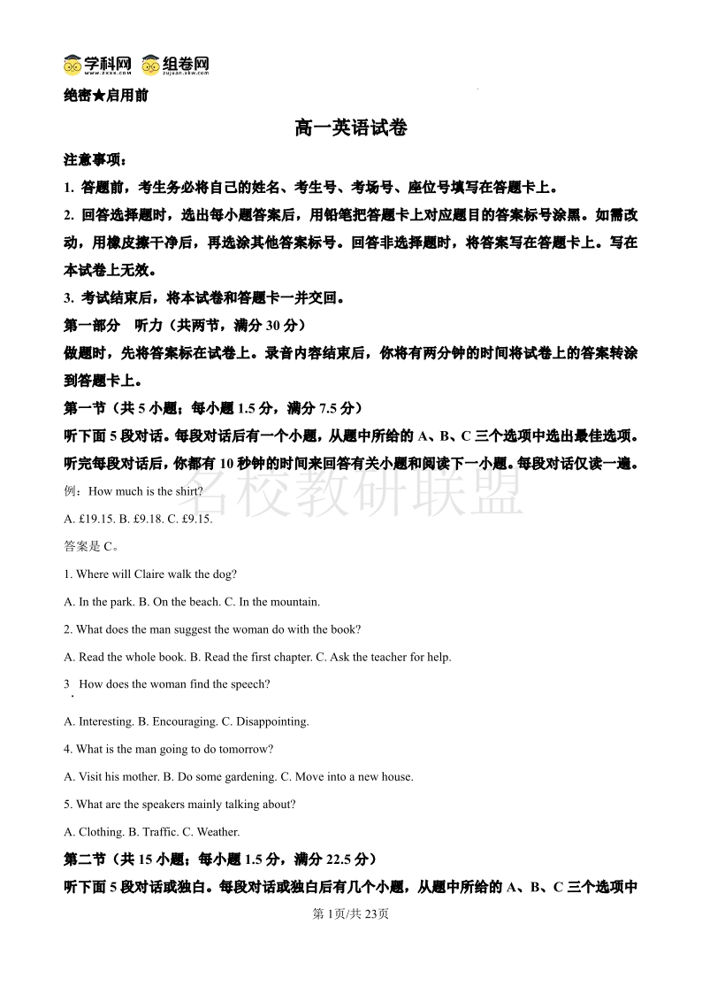 河南省创新发展联盟2024-2025学年高一下学期6月期末考试 英语答案.pdf