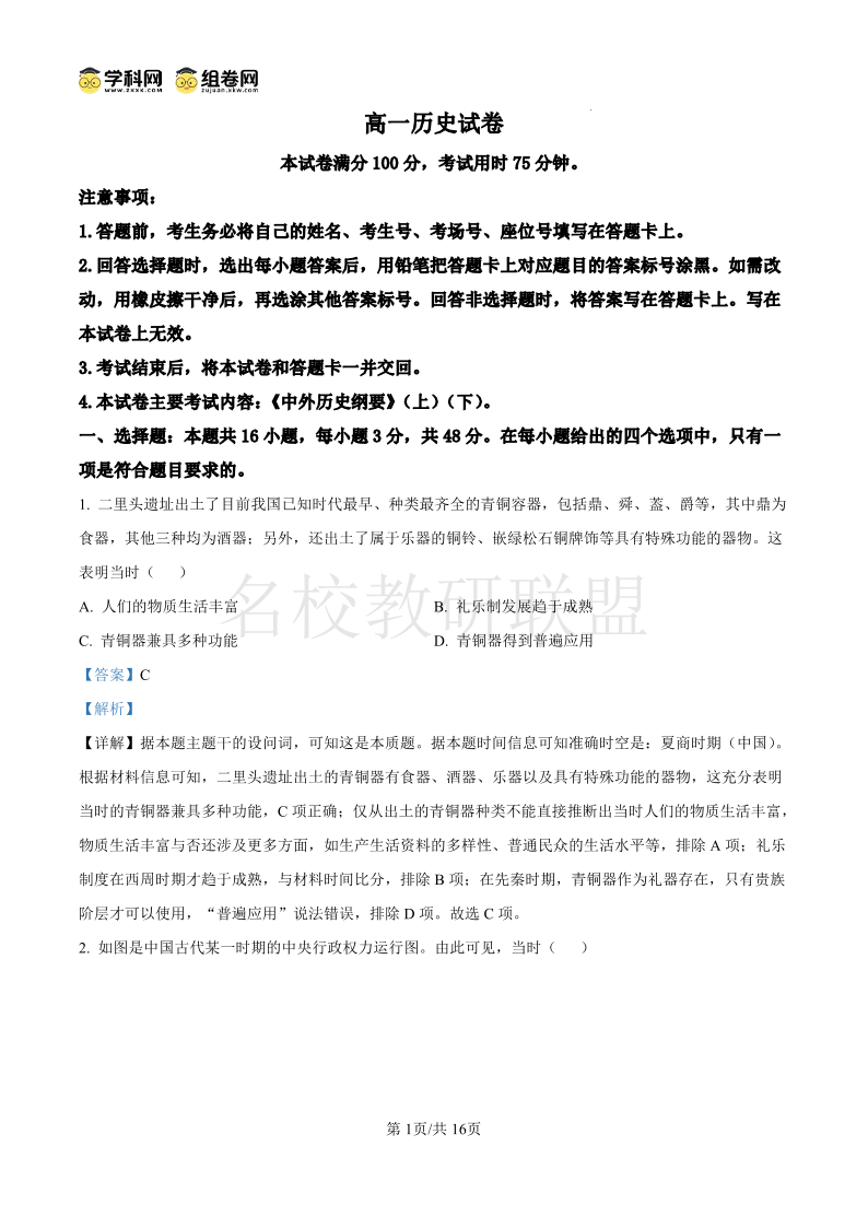 河南省创新发展联盟2024-2025学年高一下学期6月期末考试 历史答案.pdf