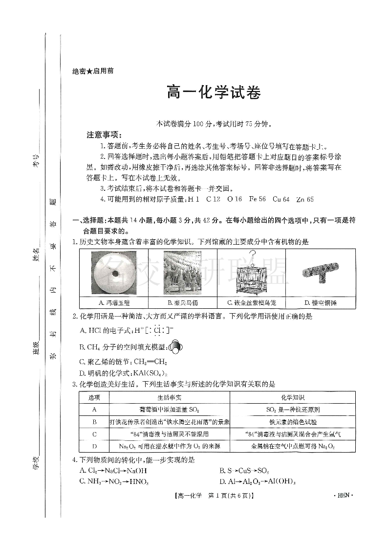 河南省创新发展联盟2024-2025学年高一下学期6月期末考试 化学.pdf