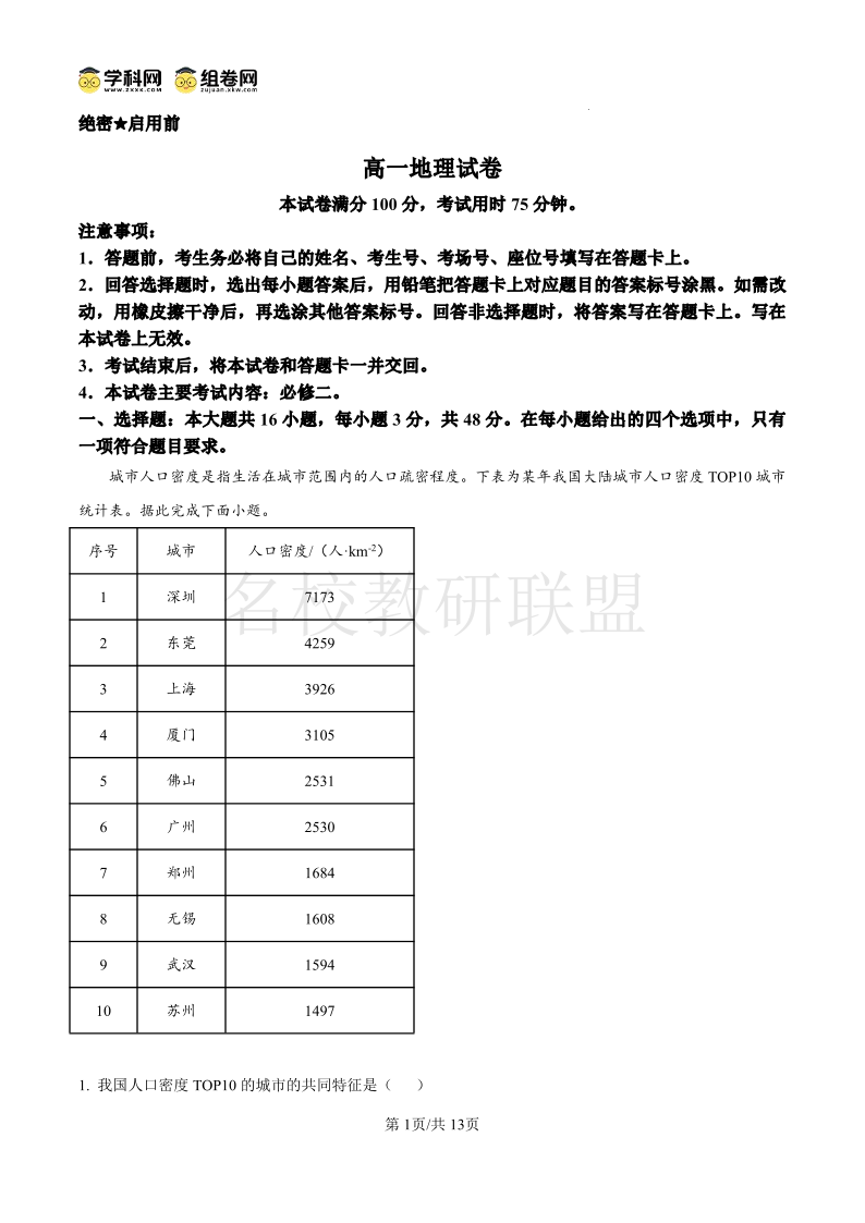 河南省创新发展联盟2024-2025学年高一下学期6月期末考试 地理答案.pdf