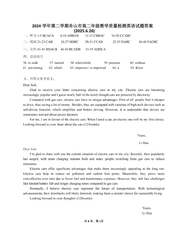 英语试题卷|2506舟山高二下期末统考答案.pdf