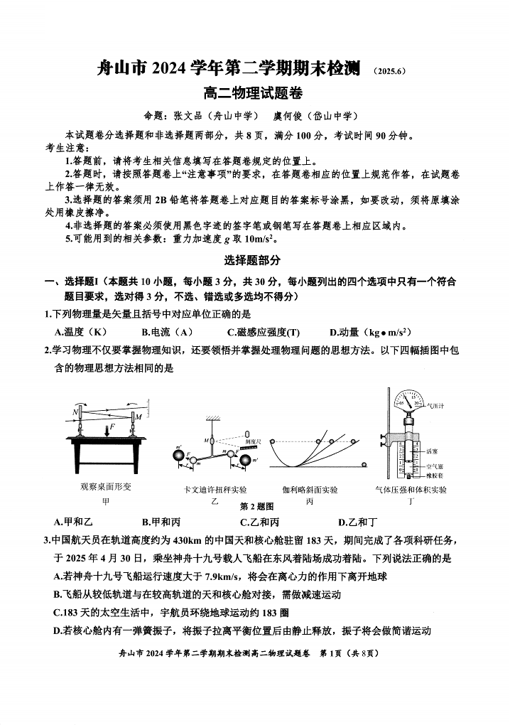 物理试题卷|2506舟山高二下期末统考.pdf