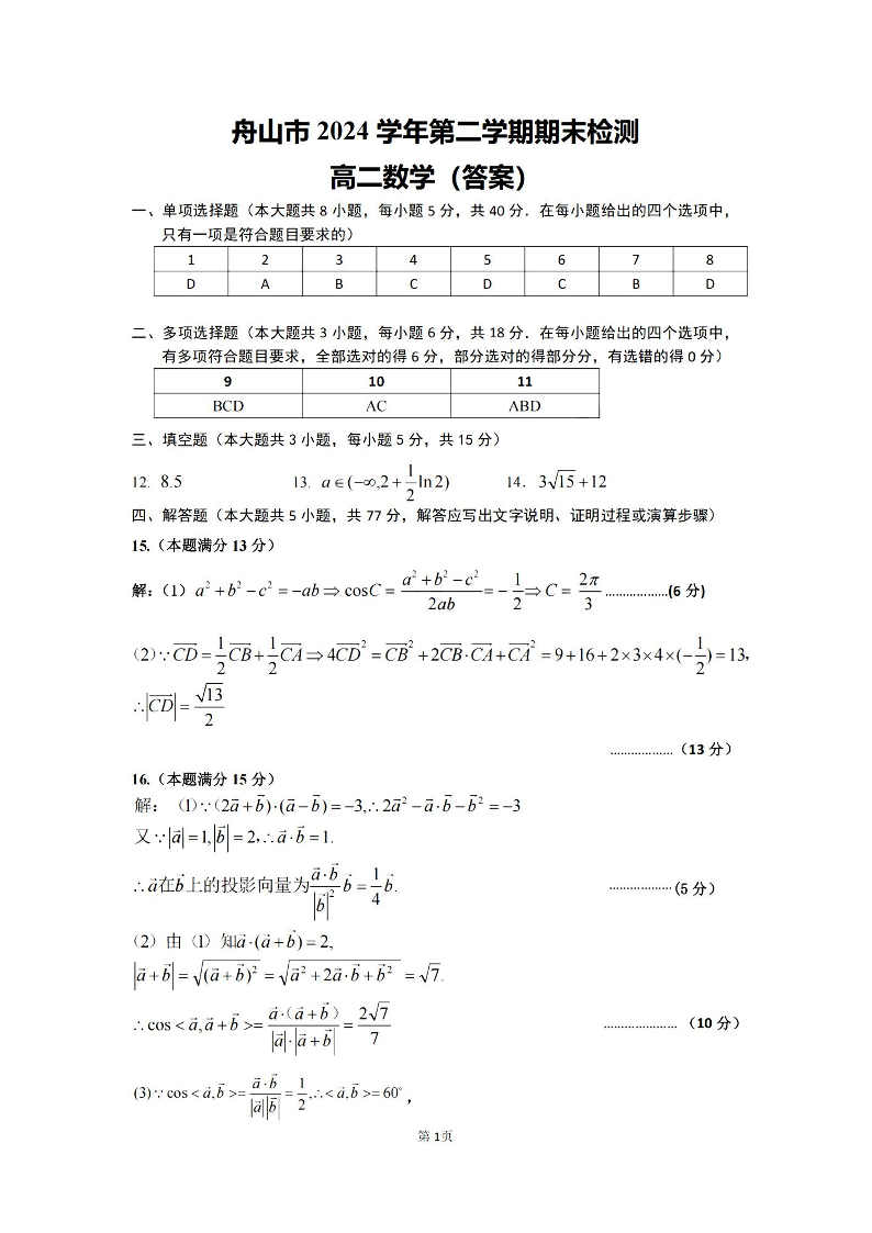 数学试题卷|2506舟山高二下期末统考答案.pdf